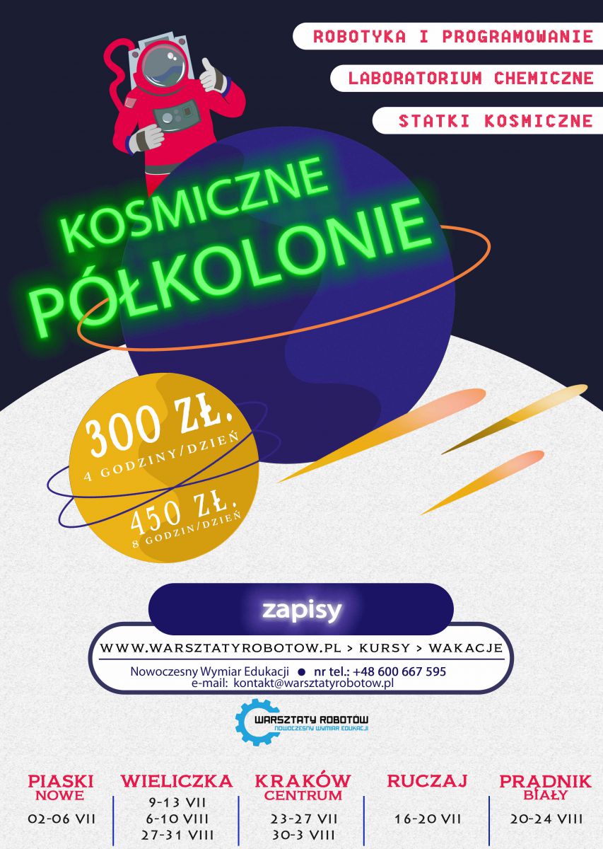 Więcej informacji i zapisy na www.warsztatyrobotow.pl > kursy>wakacje