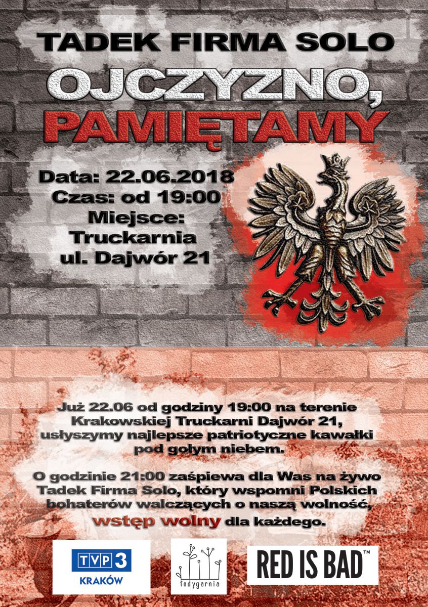 W pištek, 22 czerwca, na krakowskim Kazimierzu odbędzie się wyjštkowy patriotyczny koncert. Tadek, jeden z dwóch czołowych członków legendarnej grupy hip-hopowej Firma, zaprezentuje swój solowy repertuar podczas koncertu „Ojczyzno Pamiętamy”.