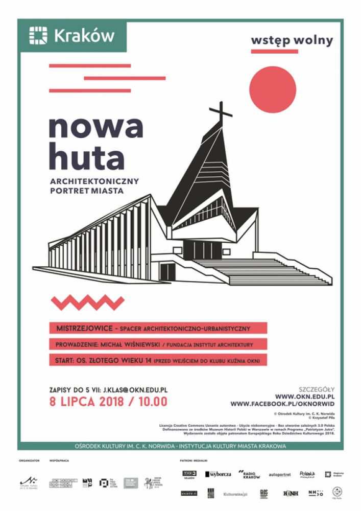 Spacer architektoniczno-urbanistyczny po Mistrzejowicach w ramach projektu Nowa Huta architektoniczny portret miasta*. Prowadzenie: Michał Winiewski (Fundacja Instytut Architektury). Zapisy do 5 VII. Wstęp wolny.