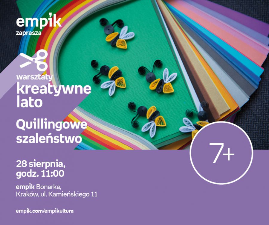 Jeli lubicie zwija quillingowe wstki, to zapraszamy do wsplnego tworzenia quillingowych obrazkw. Mog stanowi je kwiatowe wzory, serca, czy, przedmioty codziennego uytku. Wszystko zaley od wyobrani. Powieszone na sznurku w oknie bd wspania ozdob. Wiek: 7+