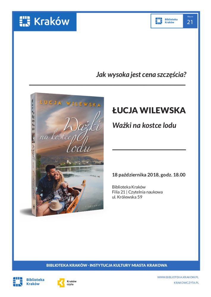 Serdecznie zapraszamy na spotkanie autorskie z Łucjš Wilewskš – autorkš powieœci obyczajowej „Ważki na kostce lodu”, a także dwutomowego cyklu z gatunku romansu paranormalnego Saga Czasu Przemiany.