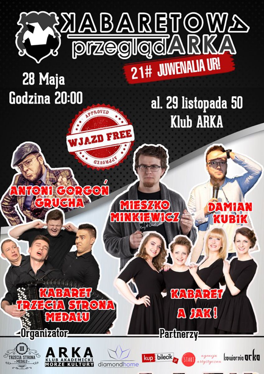 21# Edycja naszej imprezy odbędzie się pod hasłem: Juwenalia UR! Komediowo rozpoczynamy Juwenalia Uniwersytetu Rolniczego. Jako, że Juwenalia mamy dla Was również prezent. Dzięki owocnej współpracy z Uniwersytetem Rolniczym sezon zamykamy z przytupem i ogłaszamy wszem i wobec: DARMOWE WEJCIE!?