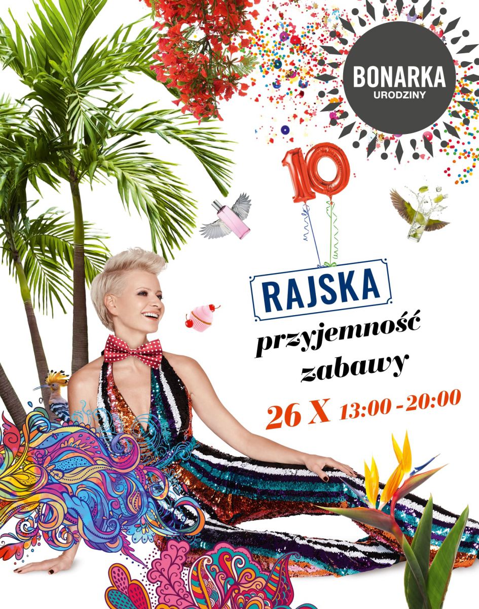 10. urodziny krakowskiej Bonarki upłynš pod znakiem rajskiej zabawy. W scenerii tropikalnej wyspy klienci centrum skorzystajš z licznych atrakcji. Będš też wiadkami spektakularnego wietlnego show oraz wezmš udział w konkursach i akcjach prosprzedażowych. Do wygrania jest wycieczka oczywicie na rajskš wyspę, oraz mnóstwo innych cennych nagród.
