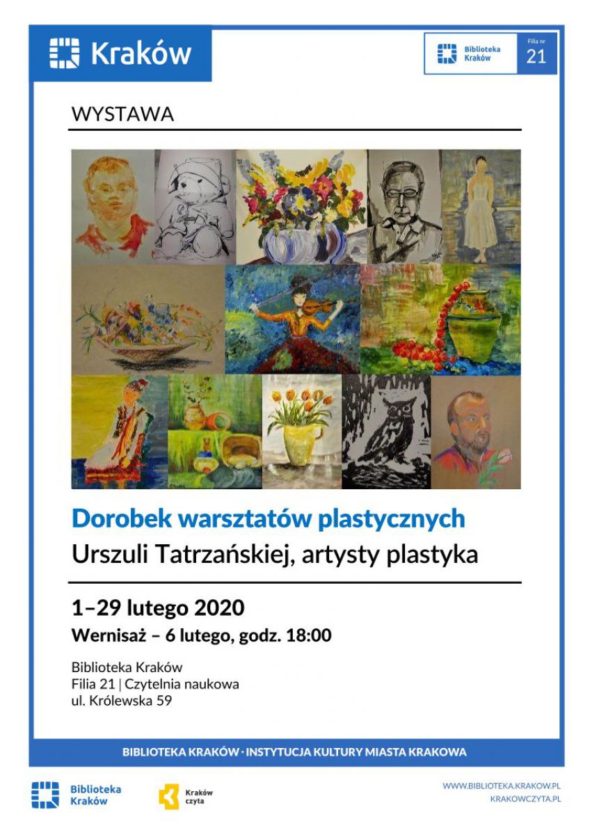 Wernisaż wystawy dorobku warsztatów plastycznych prowadzonych przez Urszulę Tatrzańskš, artystę plastyka. Na wernisażu prace zaprezentujš twórcy nieprofesjonalni, uczestnicy zajęć, którzy tworzš samodzielnie, doskonalšc umiejętnoci podczas spotkań z artystkš.Prace swoje zaprezentujš również artyci którzy opucili już nasze warsztaty.