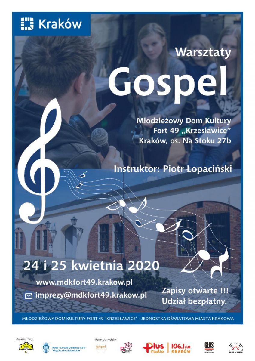 Fort 49 Krzesławice odbędš się międzypokoleniowe warsztaty muzyki gospel. Do udziału zapraszamy każdego kto lubi piewać i marzy o energetycznym, niepowtarzalnym, dobrze spędzonym czasie.