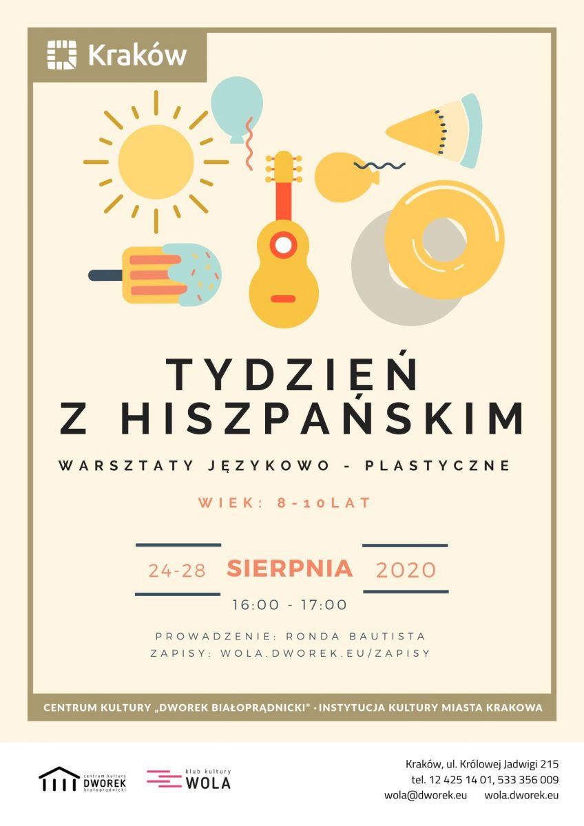 A może by tak na koniec wakacji pojechać do Hiszpanii wehikułem wyobraŸni? Zapraszamy goršco wszystkie dzieci w wieku ok. 8-10 lat do udziału w warsztatach językowo-plastycznych "Tydzień z hiszpańskim" w Klubie Kultury Wola, ul. Królowej Jadwigi 215. Będzie słonecznie i radoœnie 🌞. Zajęcia poprowadzi niezastšpiona Ronda Bautista, ceniona w Hiszpanii i Polsce artystka młodego pokolenia.