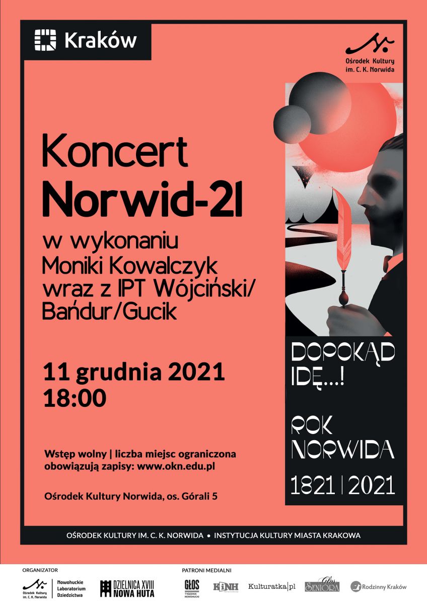 Monika Kowalczyk wraz z IPT Wójciński/Bańdur/Gucik w premierowym programie NORWID-21 mierzš się z dziedzictwem poety, reinterpretujš jego twórczoć, konfrontujšc swojš wizję z innymi muzycznymi adaptacjami twórczoci Norwida, w tym znakomitymi utworami Czesława Niemena. Projekt NORWID-21 jest organicznym połšczeniem songwriterskiej tradycji pieni, charakterem oddajšcej ducha przedstawianej poezji i improwizacji, nierzadko przekraczajšcej granice szeroko pojmowanego jazzu, wkraczajšcej na pole muzyki hałaliwej i transowej.
