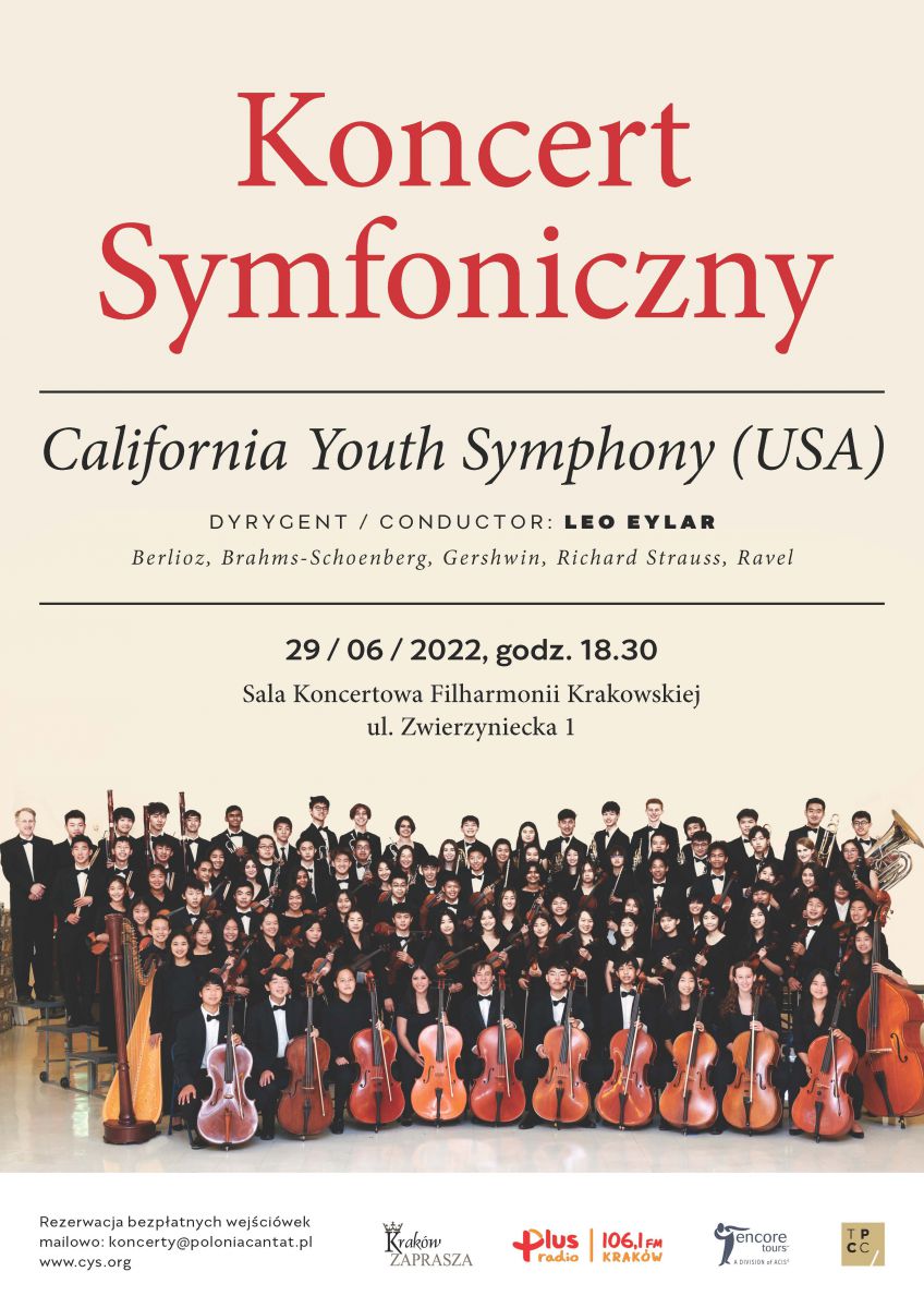 Serdecznie zapraszamy na Koncert Symfoniczny młodzieżowej orkiestry symfonicznej ze Stanów Zjednoczonych CALIFORNIA YOUTH SYMPHONY