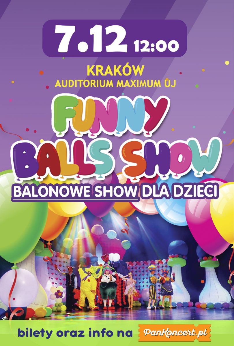 Agencja koncertowa „Pan Koncert” zaprasza na międzynarodowe widowisko dla dużych i małych „Funny Balls Show”, w którym spełniają się najpiękniejsze sny, a marzenia najmłodszych stają się rzeczywistością! Tu dzieją się rzeczy niezwykłe, tu radość nie schodzi z dziecięcych twarzy! Przybywajcie więc do magicznej Balonolandii i bawcie się z nami! Promo-video: https://youtu.be/4hcDfUapXWY