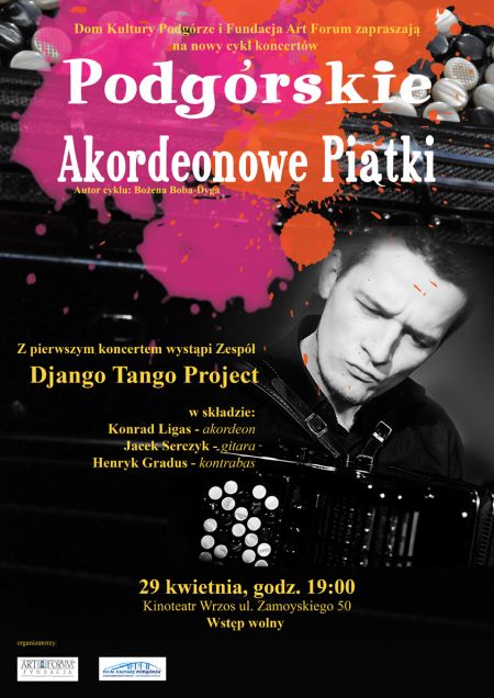 Zespół Django Tango Project powstał z inicjatywy akordeonisty Konrada Ligasa i gitarzysty Jacka Serczyka. Głównš ideš zespołu jest szukanie unikalnego brzmienia w trio z wymagajšcym instrumentarium, jakim jest: akordeon, gitara i kontrabas. Prezentowany repertuar jest bardzo zróżnicowany, poczšwszy od walców francuskich i cygańskiego jazzu z charakterystycznym akompaniamentem gipsy gitary, po tango Astora Piazzolli, utwory Richarda Galliano i Chicka Corei.