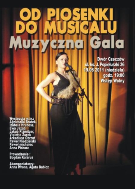 W stylowych dworskich wntrzach krakowscy artyci zapraszaj na Gal Muzyczn, ktra stanowi bdzie wdrwk po szlagierach muzyki rozrywkowej prezentowanej w wiatowych przedstawieniach musicalowych.