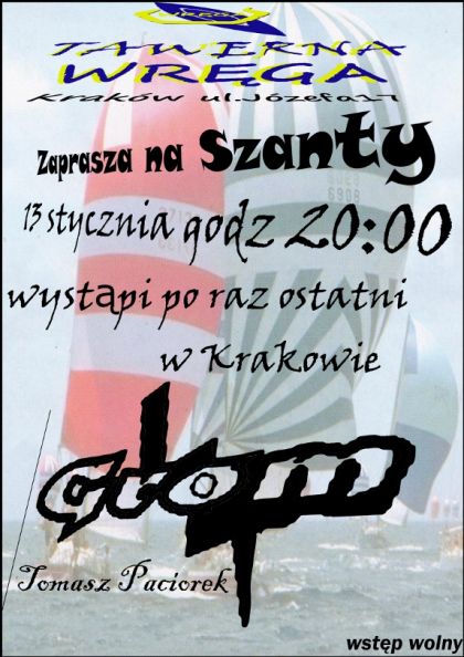 Mody,obiecujcy warszawski wykonawca szantowy.W jego reperuarze mozna odnale wietnie zaaranowane wersje najpopularniejszych piosenek eglarskich jak i odrobin szanty klasycznej,nieco poezji piewanej i pieni kubryku.GrOm zacz komponowa jego szanta "O Harrym pie radosna" opisuje jeden z najstarszych eglarskich dowcipto .Nie jest to koniec jego kompozycji.Zapraszamy do posuchania!!