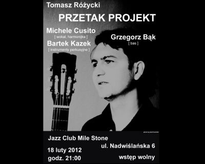 Opis Przetak Projekt to powoany przez Tomasza Ryckiego kolektyw muzyczny, osadzony stylistycznie w folklorze ameryki pnocnej, pozbawiony ortodoksji, z elementami muzyki etnicznej. Akustyczne instrumenty harmonijka ustna, perkusjonalia w korelacji z gitar elektryczn i basem tworz surowe, unikalne brzmienie.