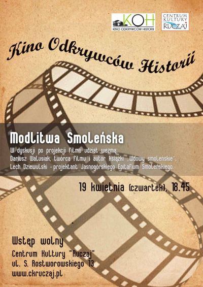 Centrum Kultury "Ruczaj" zaprasza na projekcję filmu "Modlitwa smoleńska" i dyskusję z udziałem Dariusza Walusiaka, twórcš filmu i autorem ksišżki "Wdowy smoleńskie" oraz Lecha Dziewulskiego, projektanta Jasnogórskiego Epitafium Smoleńskiego.
