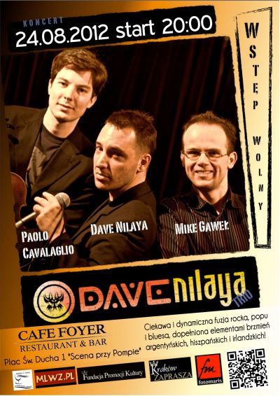 Cafe Foyer – Scena Przy Pompie Plac Œw. Ducha 4, zaprasza na koncert włosko-polskiej formacji DAVE NILAYA TRIO, w składzie: