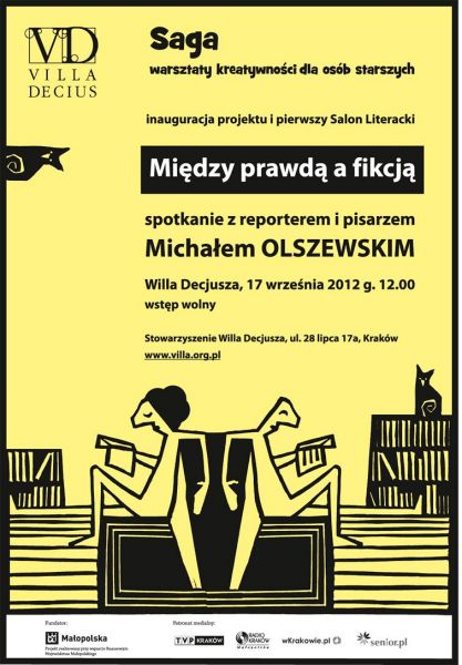 W poniedziałek 17 wrzenia o godz. 12.00 w Willi Decjusza odbędzie się inauguracja projektu Saga. Gociem pierwszego Salonu Literackiego będzie Michał Olszewski pisarz i reporter Tygodnika Powszechnego.