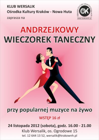 Rwnie na osiedlu Ogrodowym nie zabraknie imprezy z okazji Andrzejek. Do taca, podczas bezalkoholowego wieczorku w Klubie Wersalik Orodka Kultury Krakw-Nowa Huta, przygrywa bdzie zesp Mariana Soi.