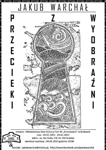 Zapraszamy na wernisaż wystawy grafiki Jakuba Warchała Przecieki z wyobrani 4 stycznia 2013 roku o godz. 19:00. Otwarcie wystawy w kawiarni Galicja MDK Fort 49 "Krzesławice" w Krakowie.