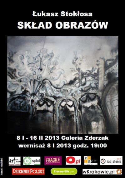 Druga indywidualna wystawa obrazów Łukasza Stokłosy wprowadzi nas ponownie w klimat noir. Razem z Autorem będziemy wędrować po opustoszałych wnętrzach europejskich pałaców zamienionych w muzea. Poczdam, Wersal, Nymphenburg... Galeria zamieni się w XVIII-wieczny skład obrazów – œcianę głównš ciasno zapełniš płótna, na stołach i pulpitach można będzie oglšdać fotografie, pamištki z podróży.