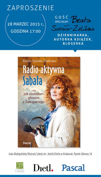 Po bloku wykadw na temat zdrowia piersi odbdzie si spotkanie promocyjne najnowszej ksiki Beaty Sabay-Zieliskiej Radio-aktywna Sabaa, czyli jak zostaam gosem z Zakopanego. Autorka opowie o kulisach powstawania ksiki oraz o tym, za co kocha gry.