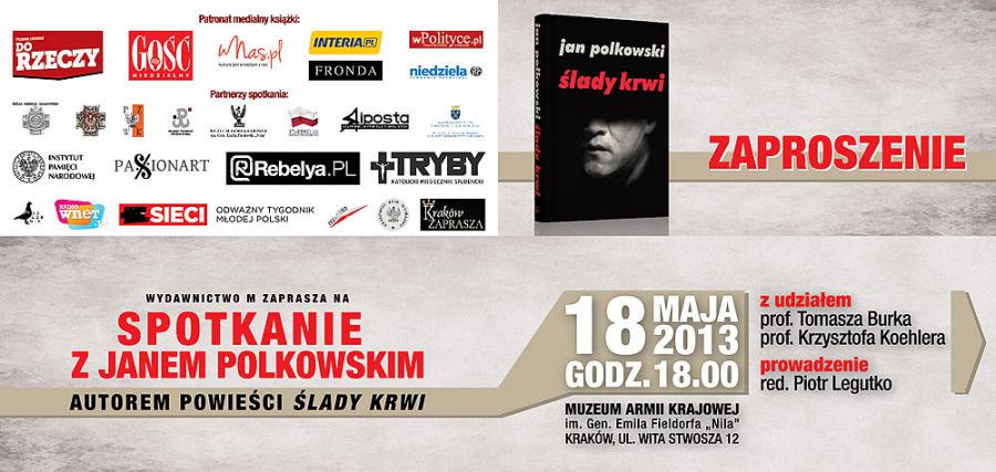 18 maja 2013 Wydawnictwo M zaprasza na spotkanie z Janem Polkowskim, autorem powieści "Ślady krwi".