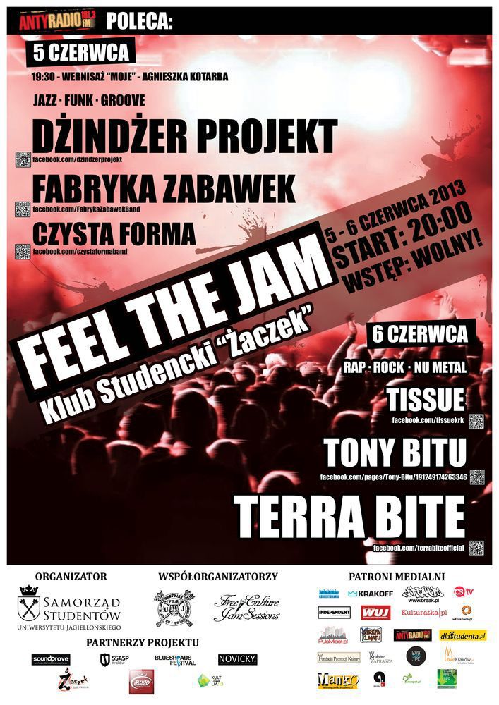 FEEL THE JAM, to dwudniowy muzyczny event podsumowujący naszą całoroczną działalność oraz postępy nad projektem. Wspólną klamrą łączącą dwa dni prawdziwego muzycznego święta jest oczywiście muzyka improwizowana, dlatego oprócz świetnych występów, przygotujcie się także na masę emocji po koncertach, podczas JAM SESSION!