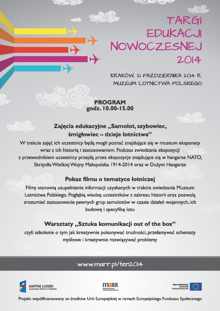 21 października 2014 w Muzeum Lotnictwa Polskiego odbędą się Targi Edukacji Nowoczesnej.