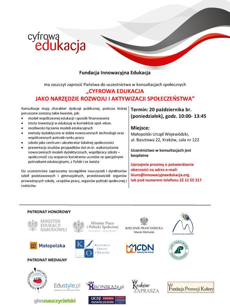 Jak powinna wyglądać edukacja wczesnoszkolna, aby przyszli absolwenci szkół nie byli bezrobotnymi? Czy szkoła może i powinna być centrum aktywizacji lokalnych społeczności, a nauczyciele ich liderami? Jakie narzędzia, w oparciu o nowoczesne technologie, są niezbędne szkołom, aby mogły pełnić taką funkcję, a tym samym stać się rentowne z perspektywy samorządów. I na koniec – jaka ma być forma efektywnej współpracy podmiotów administracji publicznej na szczeblu centralnym i lokalnym dla dobra edukacji. Te kwestie oraz przykłady dobrych praktyk omówią uczestnicy ogólnopolskich konsultacji społecznych.