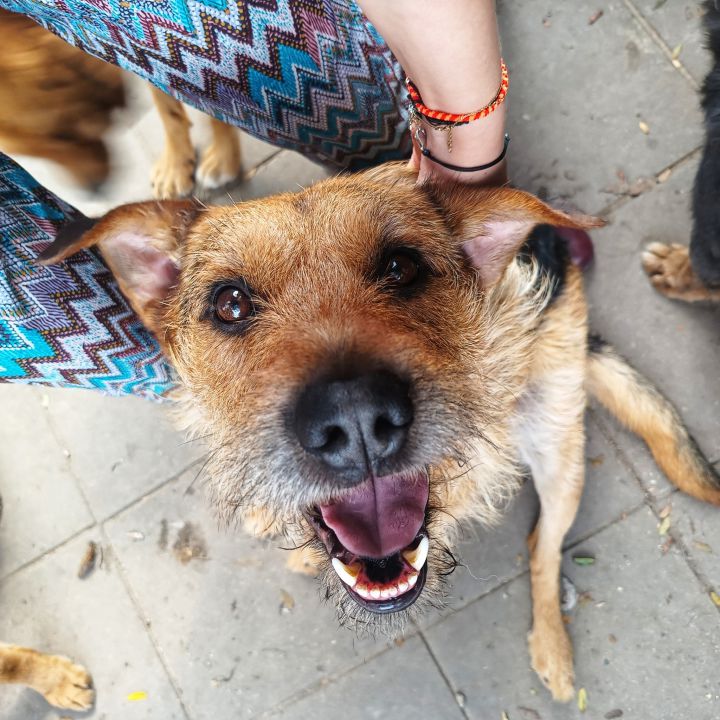 Dość ładnie chodzi na smyczy, raczej nie wchodzi w konflikty z psami, choć potrafi być zaborczy przy misce.