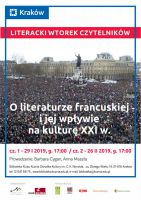 Literacki Wtorek Czytelników: Francja i reszta świata. O literaturze francuskiej i jej wpływie na kulturę XXI wieku – część I
