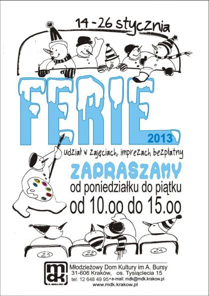 FERIE ZIMOWE w MŁODZIEŻOWYM DOMU KULTURY