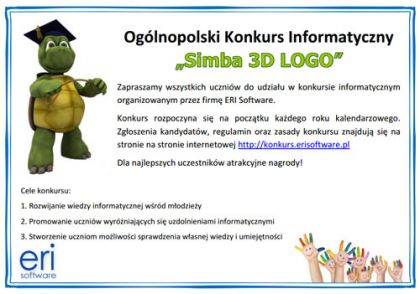 Zapraszamy uczniów szkół podstawowych oraz gimnazjum do udziały w ogólnopolskim konkursie informatycznym „Simba 3D LOGO”