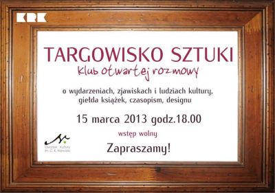| TARGOWISKO SZTUK - KLUB OTWARTEJ ROZMOWY O ZJAWISKACH, WYDARZENIACH I LUDZIACH KULTURY. GIEŁDA KSIĄŻEK, GAZET, PRZEDMIOTÓW DESIGNERSKICH. |