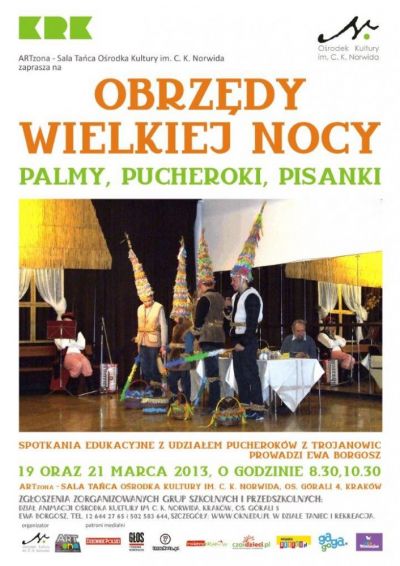 Podczas spotkania wystąpią „Pucheroki z Zielonek”, ludową muzykę zagra Wojciech Karwat, Janusz Oleszkiewicz z Muzeum Etnograficznego zaprezentuje prywatną, bogatą i ciekawą kolekcję pisanek. Opowiemy o cudownych, bogatych, kościelnych, domowych i ludowych, obrzędach i zwyczajach Świąt Wielkiej Nocy.