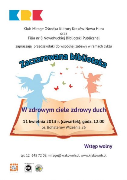 Klub Mirage Ośrodka Kultury Kraków-Nowa Huta (os. Bohaterów Września 26) zaprasza na kolejne zajęcia edukacyjno – relaksacyjne dla przedszkolaków z cyklu Zaczarowana biblioteka.