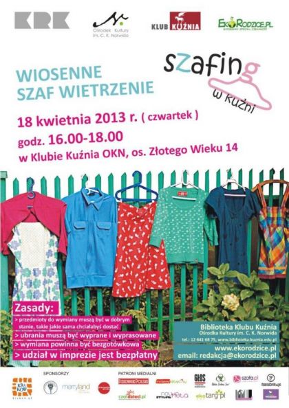 Biblioteka i Klub „Kuźnia” Ośrodka Kultury im. C. K. Norwida oraz portal Ekorodzice.pl zapraszają na SZAFING pod hasłem: Wiosenne szaf wietrzenie.