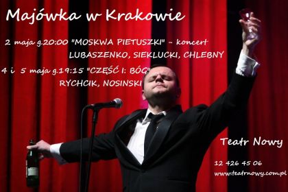 Zapraszamy 2.05 godz. 20.00 do klubu Drukarnia na Kazimierzu na wyjątkowy Koncert muzyki rosyjskiej MOSKWA PIETUSZKI. Występują Edward Linde-Lubaszenko, Piotr Sieklucki i Katarzyna Chlebny.