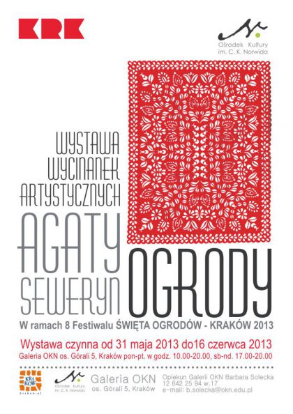 Zapraszamy na wystawę prac Agaty Seweryn zrealizowaną w ramach 8 Festiwalu Święta Ogródków w Krakowie.