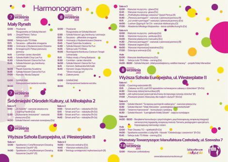 W programie między innymi: pokaz sztuk walki Kung Fu oraz Akademia Młodego Wojownika - letnia szkoła dla dzieci oraz warsztaty relaksacyjne.