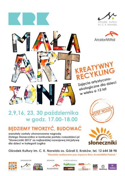 Mała ARTzona to warsztaty dla dzieci, wykorzystujące kreatywne zabawy, upcykling, czyli wykorzystanie zużytych materiałów. Będziemy tworzyć zabawki, biżuterię i inne przedmioty. Pokażemy dzieciom jak przy odrobinie chęci można połączyć oszczędność, pożyteczność i świetną zabawę!