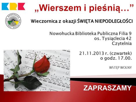 W. Szymborskiej i T. Kubiaka oraz będą wspólnie śpiewać pieśni związane z wydarzeniami historycznymi w walce o wolność.