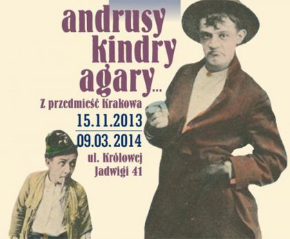 Wystawa Andrusy, kindry, agary… Z przedmieść Krakowa poświęcona jest miejskiemu folklorowi, który kształtował się w poszczególnych dzielnicach, przybliża również bogactwo historii i kultury przedmieść Krakowa. Miejska gwara i piosenki, kodeks honorowy krakowskich andrusów, a także wspólne spędzanie wolnego czasu na podwórku, ulicy i w barze tworzyły charakter przedmieść i stały się inspiracją dla bogatej twórczości artystycznej.