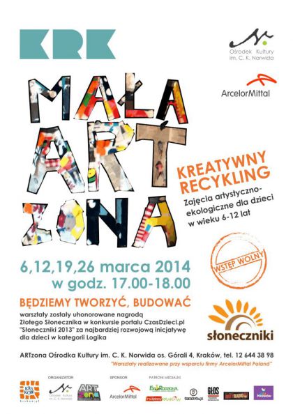 Mała ARTzona to warsztaty dla dzieci, wykorzystujące kreatywne zabawy, upcykling, czyli wykorzystanie zużytych materiałów. Będziemy tworzyć zabawki, biżuterię i inne przedmioty. Pokażemy dzieciom jak przy odrobinie chęci można połączyć oszczędność, pożyteczność i świetną zabawę!