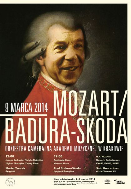 Niedzielę 9 marca określić można w kalendarzu koncertowym Akademii Muzycznej dniem fortepianu. Odbędą się wówczas dwa koncerty, podczas których studenci (Joanna Sochacka, Natalia Kuźmicka, Eligiusz Skoczylas, Zhang Sihan, Agnieszka Kopeć oraz Wioletta Fluda)z towarzyszeniem Orkiestry Kameralnej Akademii Muzycznej wykonają Koncerty fortepianowe Wolfganga Amadeusza Mozarta: G-dur KV 453, d-moll KV 466, Es-dur KV 482. Koncert o godzinie 12:00 poprowadzi Maciej Tworek, natomiast wieczorem o godzinie 18:00 dyrygować będzie Paul Badura-Skoda. Możliwość konfrontacji różnych wykonań tych samych utworów w jednym dniu i w tym samym miejscu, którym będzie Sala Koncertowa Akademii Muzycznej, stanie się z pewnością niecodziennym i ciekawym doświadczeniem.