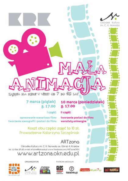 Serdecznie zapraszamy dzieci, które chciałyby poznać tajniki animacji filmowej. Jeśli chcecie stworzyć własny film animowany, poznać jego tajniki krok po kroku, od pomysłu, prostego scenariusza poprzez realizację przyjdźcie koniecznie do ARTzony. Podczas warsztatów spróbujemy wspólnie zrealizować krótki film animowany, stworzymy scenariusz, scenografię, postaci filmowe a później wykonując proste czynności przesuwania przedmiotów, wyciętych figur, stworzymy swoją autorską animacje.