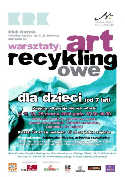 Warsztaty oparte są na idei artystycznego recyklingu, czyli odzyskiwaniu zużytych przedmiotów, materiałów i twórcze ich wykorzystanie.