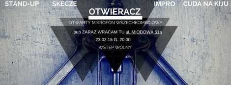 Po pierwsze przygotować materiał. Po drugie się zgłosić:) Można to zrobić przed wejściem, ale zdecydowanie lepiej napisać wcześniej maila: beshop@o2.pl (opcja numer dwa zdecydowanie ułatwia kwestie organizacyjne). Ważne jest, aby podczas Otwieracza pojawiły się rzeczy względnie nowe - to jest numery nad którymi prace dopiero trwają. Specjalna zasada dla grup impro brzmi: zapraszamy, ale z bardziej oryginalnymi formatami niż switch i randka w ciemno. Nagród niestety brak.