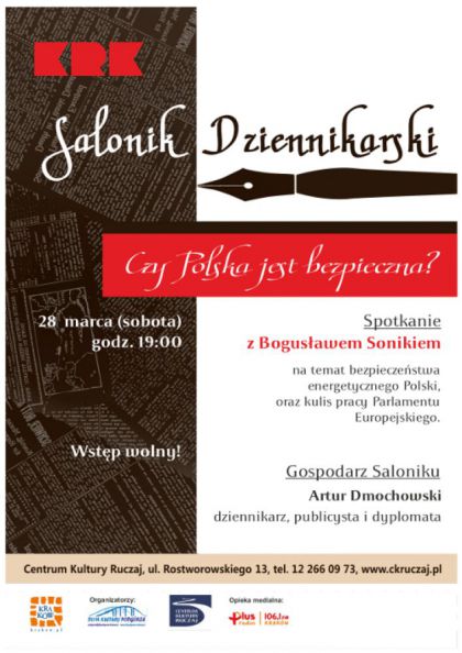 Gościem Saloniku będzie Bogusław Sonik, poseł do Parlamentu Europejskiego w latach 2004-2014, autor raportu o wpływie wydobycia gazu łupkowego na środowisko naturalne, zaangażowany w prace parlamentarnych komisji ochrony środowiska, praw człowieka i kontroli budżetowej.