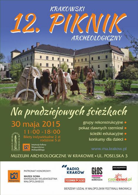 30 maja 2015 roku w godzinach 11.00-18.00 w Muzeum Archeologicznym w Krakowie odbędzie się 12. Krakowski Piknik Archeologiczny. Tegoroczny piknik po raz pierwszy zostanie zorganizowany w nowym punkcie, ogrodach Muzeum (wejście od ul. Poselskiej). Poprzednie edycje odbywały się w zespole dworsko-parkowym w Branicach, miejscu zacisznym z dala od miejskiego gwaru. Nowa lokalizacja to co prawda centrum Krakowa ale również zielony zakątek miasta. Organizatorzy spróbują zainteresować piknikiem większe grono odbiorców, również tych, którzy nigdy w nim nie uczestniczyli.