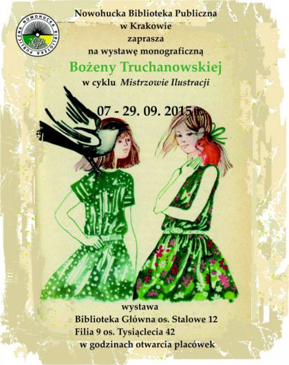 Nowohucka Biblioteka Publiczna w Krakowie zaprasza na wystawę monograficzną Bożeny Truchanowskiej w cyklu Mistrzowie Ilustracji. Wystawa towarzyszyła XIV edycji Poznańskich Spotkań Targowych – Książka dla Dzieci i Młodzieży, współorganizowanym przez Polskie Towarzystwo Wydawców Książek, Międzynarodowe Targi Poznańskie i Centrum Kultury Zamek w Poznaniu. Wystawa jest współfinansowana przez Samorząd Województwa Wielkopolskiego.